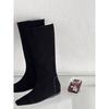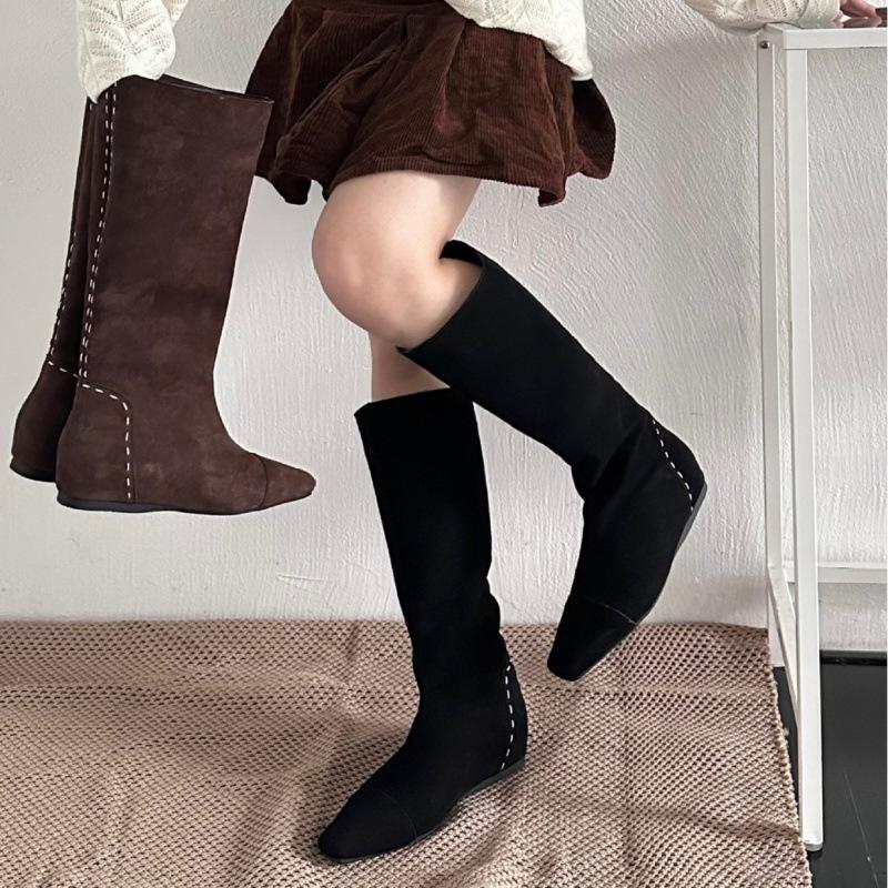 Design sewing thread retro 2025 winter new pointed head inner height increase suede tall tube western cowboy boots women