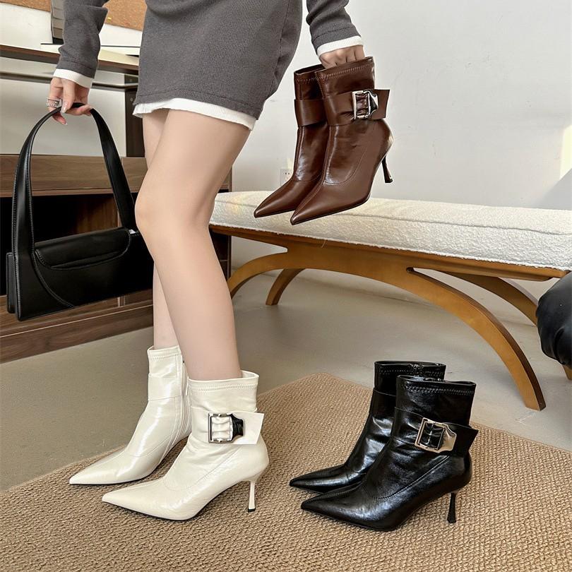 Autumn and winter new foreign trade small square head high heel fine heel European and American fashion western women's short boots boots
