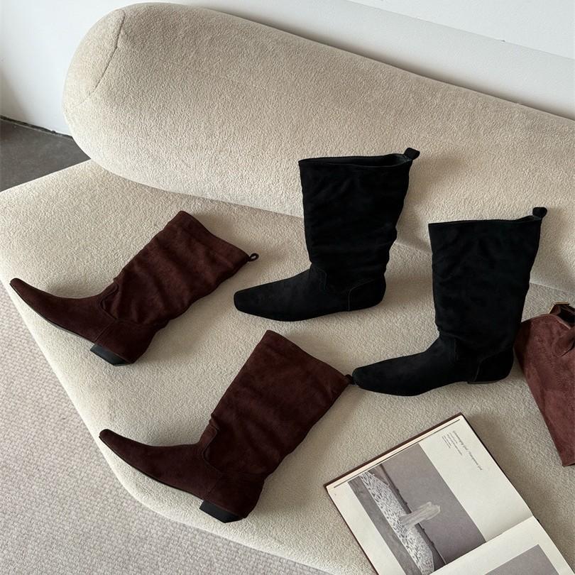 Niche design thick heel straight short boots women's 2025 autumn new western cowboy boots pointed middle boots Martin boots