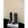 French retro thick-heeled boots women's autumn and winter black thick-soled thin boots women's wasteland wind wrinkled pile short boots