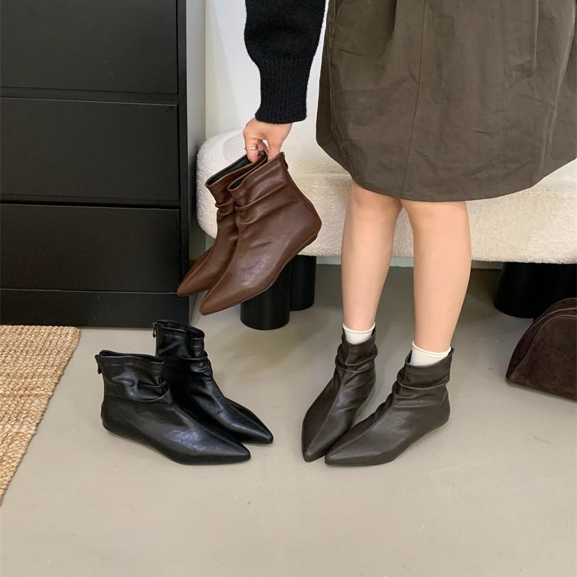 Pointed foreign style small short boots women's shoes autumn and winter 2025 new Korean small ankle boots thin pile Chelsea boots