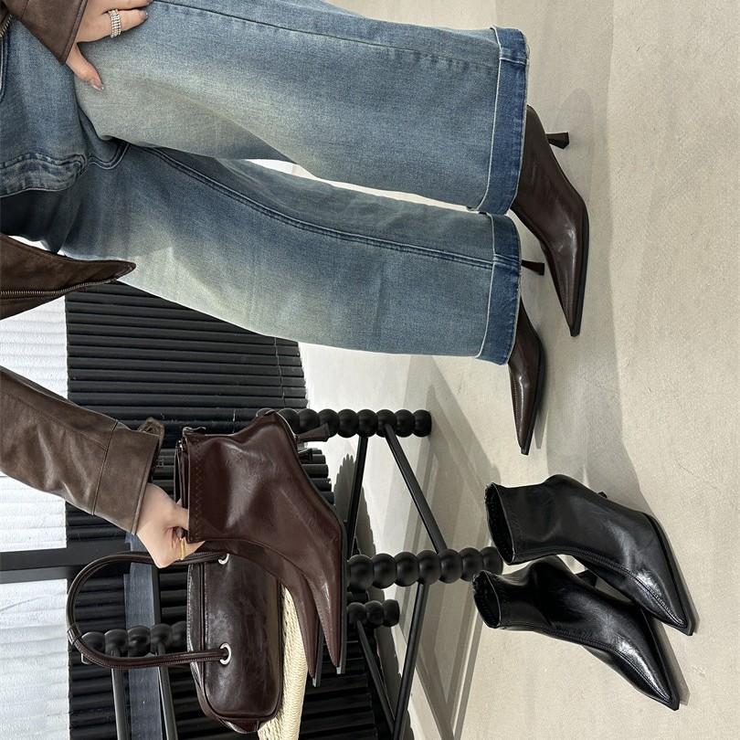 Pointed thin heel medium heel short boots 2025 new versatile comfortable and thin one-pedal lazy Martin boots women's high heels