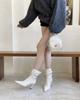 2025 winter fashion pleated piled boots women's high heel elastic thin boots pointed short boots thick heel Korean small bare boots