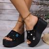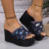 Platform slippers women's 2025 spring and summer new European and American large-size fashion denim wedge heel Roman sandals women's shoes