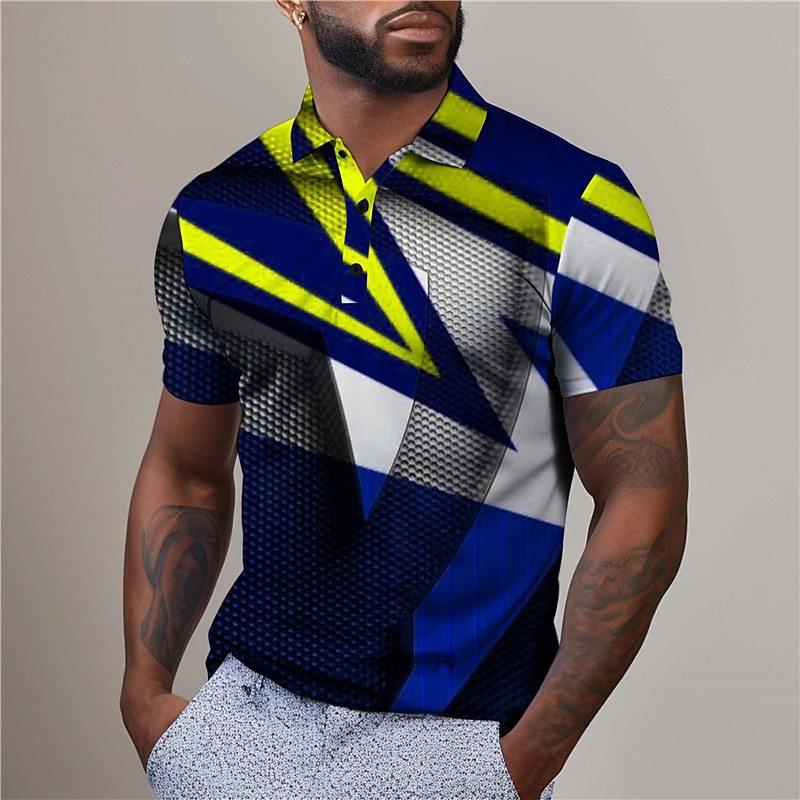men polo shirt short sleeve stripe 3d print tops fashion polyester breathable comfortable polos shirts