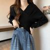 Women's Irregular V-Neck Loose Knit Sweater - Autumn/Winter Edition