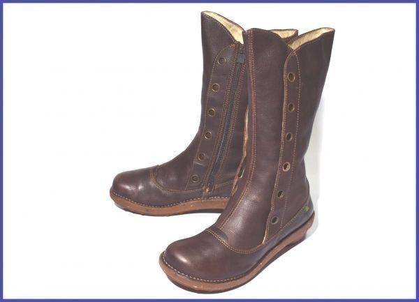 Spanish brand El Naturalista grained leather side-zip boots, size 25.0, brown, S121