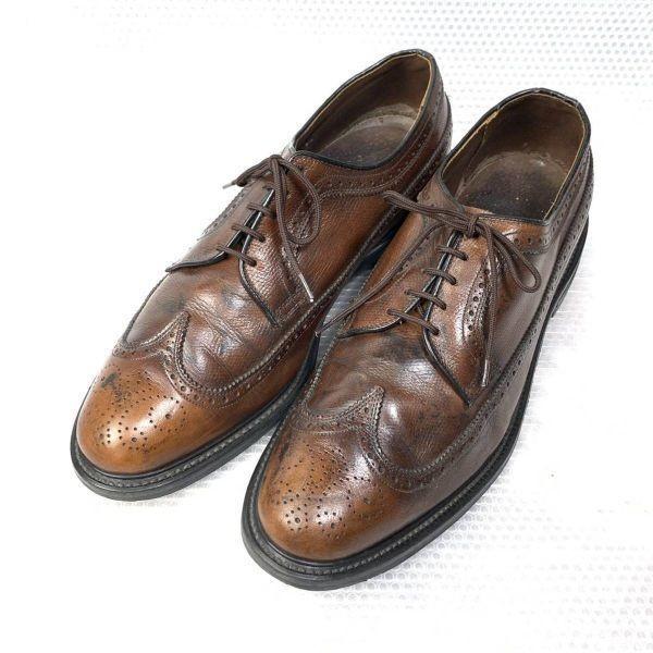 70s-80s? ★ Vintage ★ Unknown manufacturer ★ Size 9.5D ★ 27.0-10.8 inches ★ Long wingtip American full brogue ★ Brown ◆ is6-48