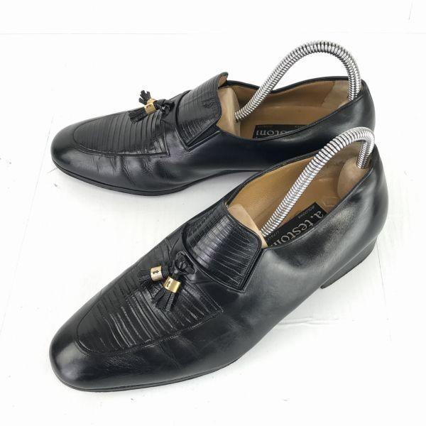 Made in Italy ★ a.testoni ★ Lizard Leather Tassel Loafers [6.5G/25.0/Black] Business/Dress Shoes ◆ bA-95