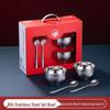 Red 304 Stainless Steel Bowl Set, Double-Layer, Anti-Scald, Heat Insulation - Available in Four or Six-Piece Sets.