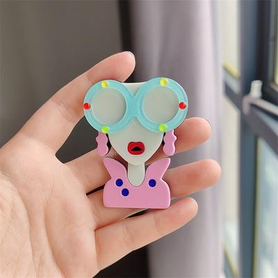 Stylish Cartoon Pink Character Brooch Featuring Big Eyes Fashionable Metal Accessory Pin