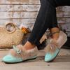 Dámské zimní boty v korejském stylu, vintage, chlupaté - kulatá špička, mašlička, nazouvací, vícebarevné, s fleecovou podšívkou