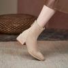 Short boots Skinny new women's autumn and winter velvet thin boots Square head versatile single boots Martin boots Medium heel thick heel boots