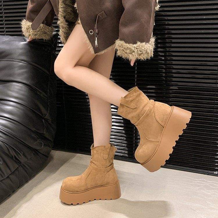Small thick-soled muffin sole fashionable versatile snow boots women's 2025 winter new velvet thickened warm cotton shoes