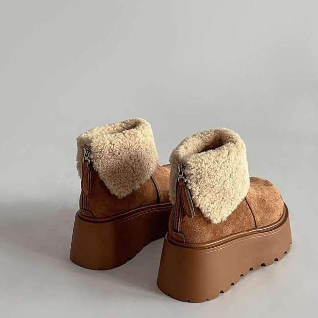 Fashion turning hair to increase the height of snow boots for children in autumn and winter 2025 New velvet thickened-soled mango head Birkenstock