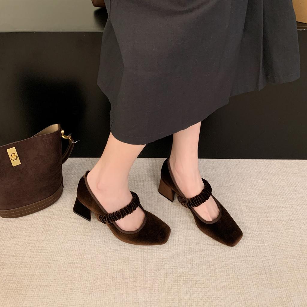 2025 early spring and autumn new French retro square head thick heel Mary Jane shoes shallow mouth evening breeze gentle temperament single shoes