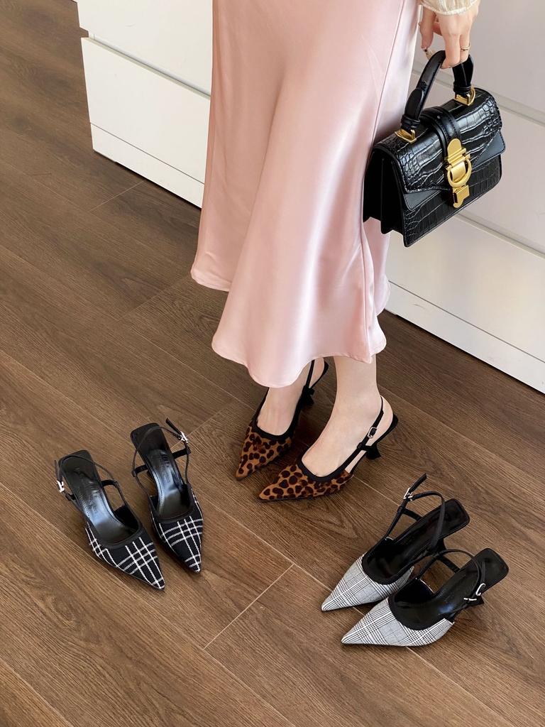 European and American style plaid leopard print high heel bag head sandals single shoes