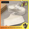 Women's White Thick-Soled Platform Mules - Closed-Toe, Backless, Petite Height Boost, Spring/Summer
