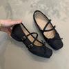 Retro gentle fairy skirt low heel square head bow word belt single shoes women 2025 new ballet style women's shoes