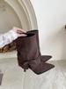 2025 new autumn European and American style belt buckle suede pointed high heel stiletto short boots