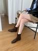 Korean version of square head suede splicing fashion boots women's autumn and winter new temperament inner height increase thin boots rear zipper sho