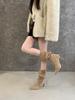 Upgraded version~ khaki boots women's stiletto 2025 new pointed short boots high heels thin medium tube stacking boots