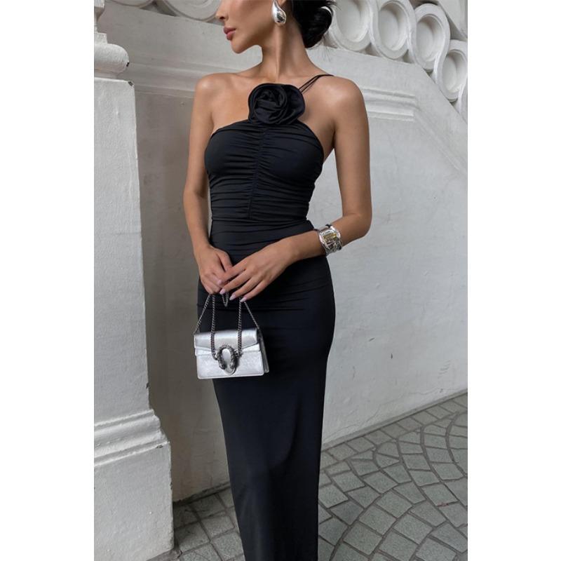 Celebrity Královský Sesterský Styl Šikmé Rameno Ramínkový Dlouhé Šaty Dámské Trendy Květinami Zdobené Slim Šaty