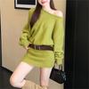 2025 Early Autumn Korean One-Shoulder Long-Sleeve Bodycon Dress - Women's Slimming Waist Sweater Dress