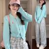Korean Style Light Blue Long Sleeve Knit Cardigan for Women - Early Autumn Thin Sweater Top