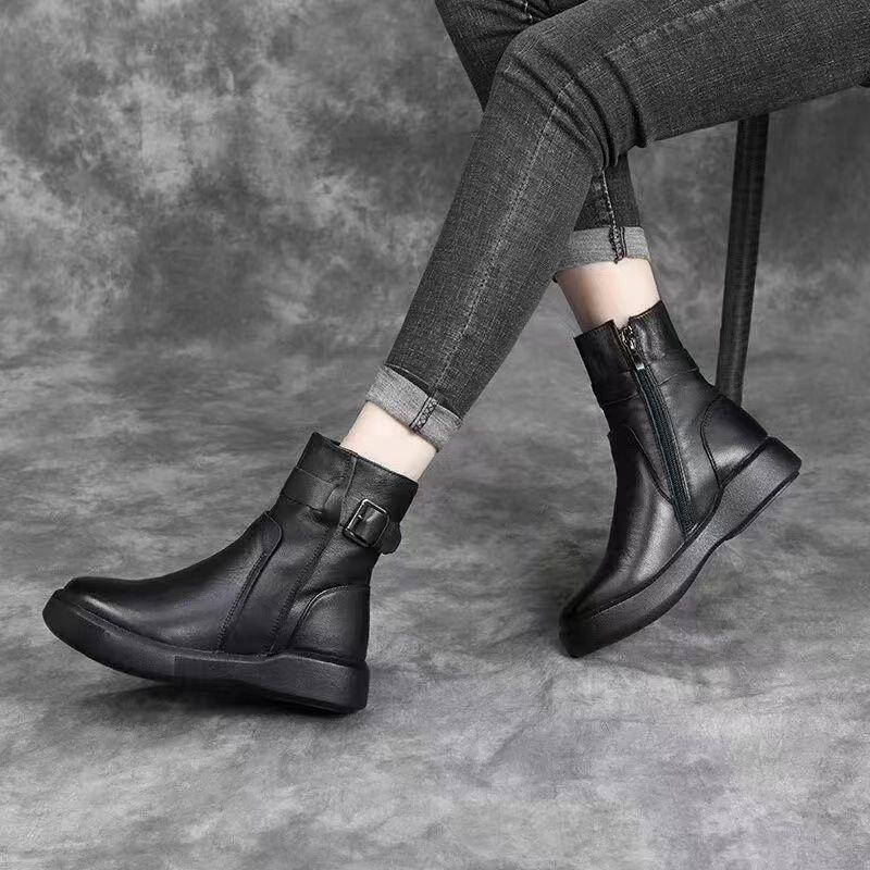 Dámské kotníkové boty v britském stylu z měkké kůže - Hřejivá sametová podšívka pro podzim a zimu