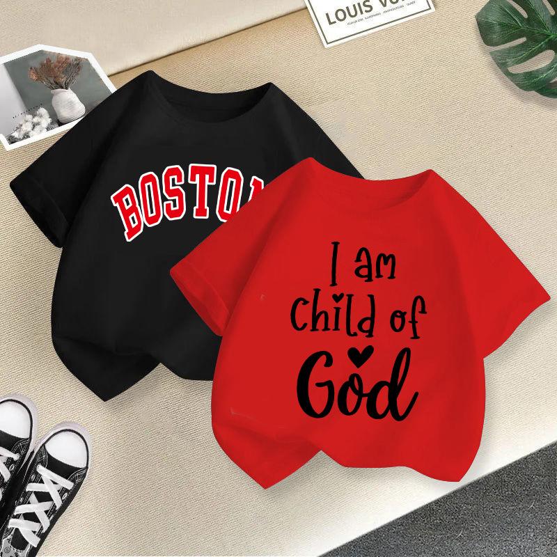 Dětské tričko s potiskem písmen Dětské tričko Dětské 100% bavlněné oblečení 2-13 let Tričko Top