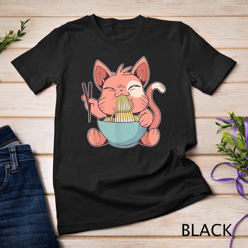 Cute Anime Cat Eating Ramen Japanese Kawaii Style T-Shirt Unisex T-shirt