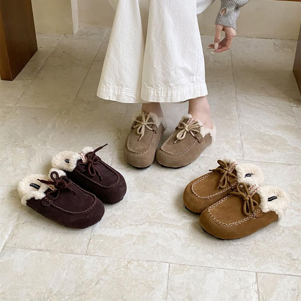 2025 autumn fashion bag head matte leather bow lace-up thickened fluff outer wear commuter women's shoes