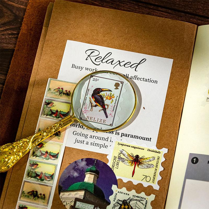 50 listů Filatelistická muzejní série Samolepky s poštovními známkami Téma Scrapbookingový materiál Ručně vyráběný Diář Album Junk Journal Potřeby