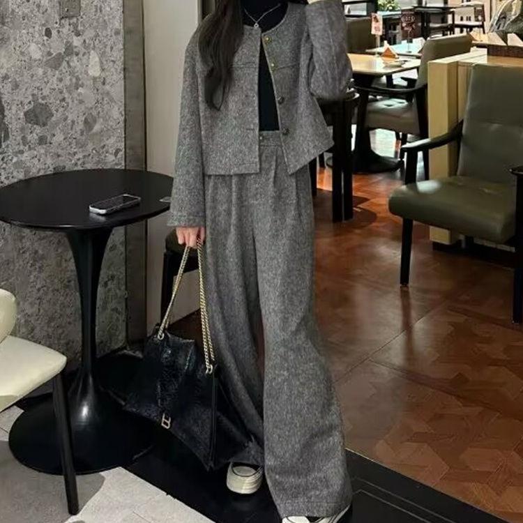 Women's Autumn/Winter Tweed Suit: Little Fragrance Style Coat & Wide-Leg Pants Set