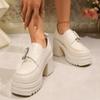 Square Buckle Chunky Heels Pumps for Women Spring Patent Leather Platform Loafers Woman Black Thick Heeled Jk Lolita Shoes