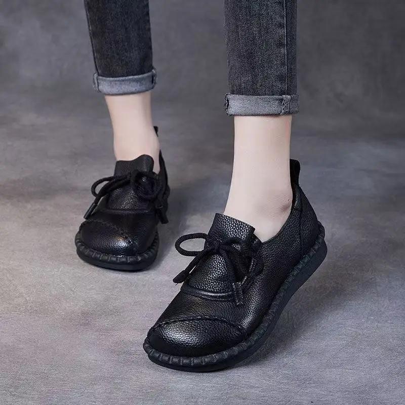 Soft-Skinned Soft-Soled woman Middle-Aged And Elderly Flat-Heeled Comfortable Shoes In New Small Ultrathin PU aterial Shoes