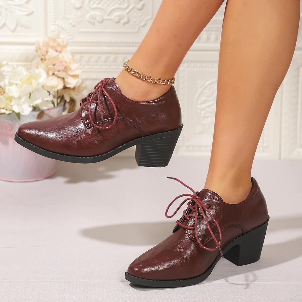 Spring Shiny Leather Women Shoe Round Toe Loafers Woman Pumps Chunky Leather High Heel Shoes for Women De Mujer
