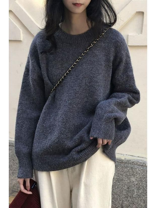 Women's Japanese-Inspired Retro Loose Knit Sweater - Spring/Summer Round Neck, Versatile & Slimming
