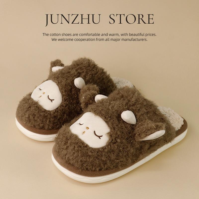 Nové roztomilé bavlněné pantofle s jehněčinou dámské podzimní a zimní venkovní nošení vnitřní domácí protiskluzové teplé plyšové pantofle