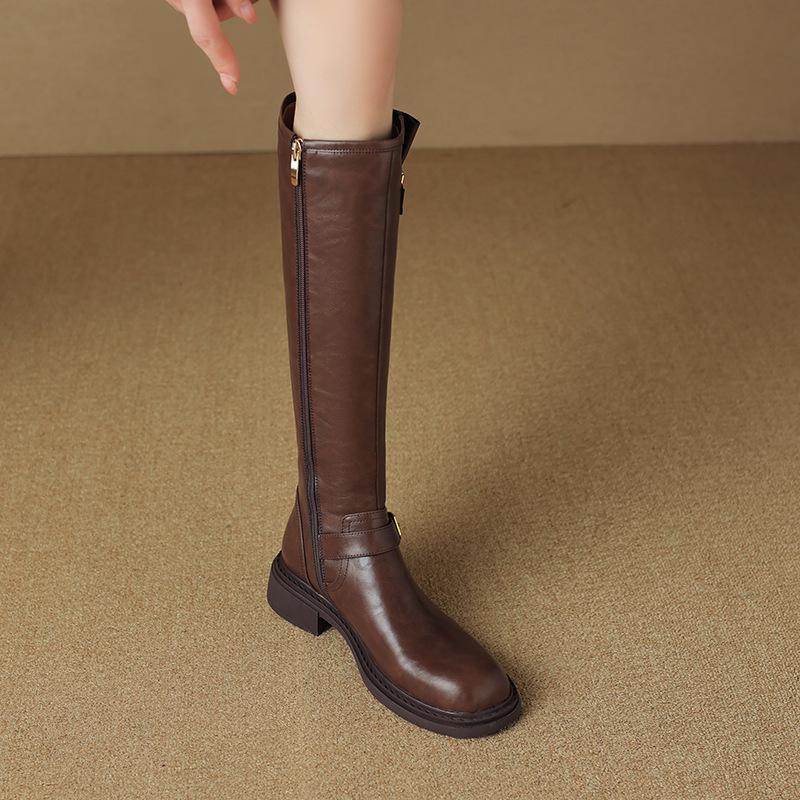 Vintage Low Heel Women Knee High Boots Fashion Ladies Belt Buckle Knight Long Booties botas de inverno feminina