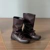 Vintage Flats Women Western Cowboy Boots Fashion Ladies Square Toe Pleated Knight Mid Calf Booties