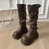Winter Platform Height Increase Woman Knight High Boots Concise Belt Buckle Shoes Punk Vintage Long Booties De Muje