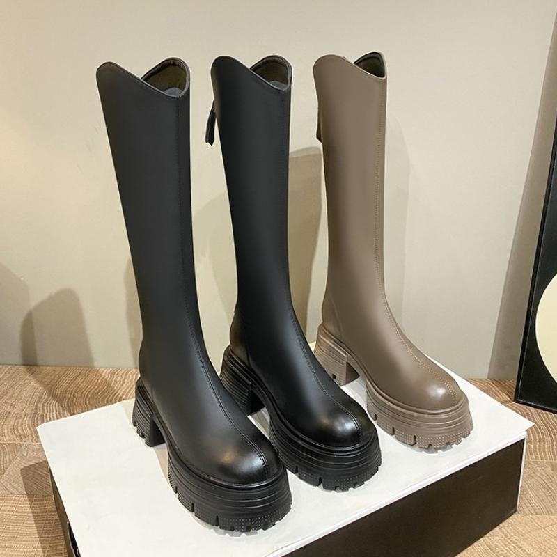 Winter Platform Height Increase Woman Knight High Boots Concise Thick Heel Shoes Stretch Slim Long Booties De Muje