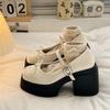 Platforma Silný Vysoký Ženy Mary Jane Boty Dámské Stručné Venkovní Lodičky Jaro Podzim Dámské Šaty Kožené Boty