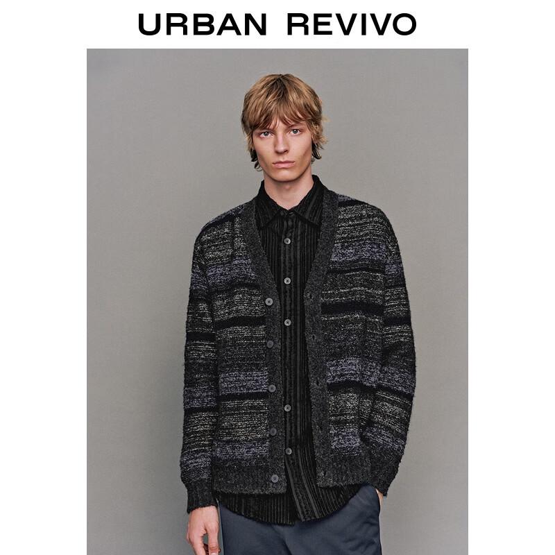 UR Men's V-Neck Color Block Stripe Knit Cardigan