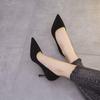 Vstupte do elegance s těmito sofistikovanými černými vysokými podpatky, navrženými pro moderní ženu.. Tyto boty, vyrobené z luxusního semišového svršku, nabízejí rafinovaný a stylový vzhled vhodný pro profesionální i neformální příležitosti.. Design se špičatou špičkou a nízký střih dodávají nádech šik sofistikovanosti, ideální pro každé roční období od jara do podzimu.. Pohodlí je zajištěno podpůrnou polyuretanovou podšívkou a stélkou, zatímco odolná gumová podrážka poskytuje stabilitu při každém kroku.. Všestranné a nadčasové, tyto lodičky na jehlovém podpatku jsou nezbytným doplňkem každého šatníku.