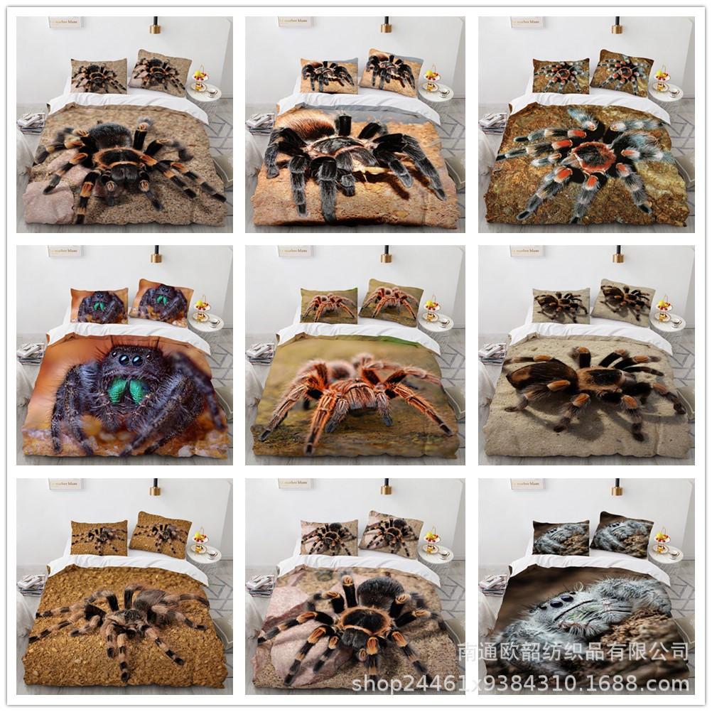 Spider Quilt Set Three-Piece Polyester 90G Abraded 3D Digital Four-Piece Bedding Set