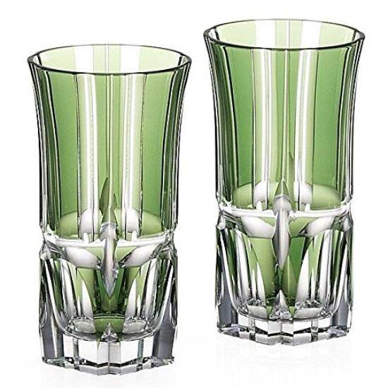 Kagami Crystal Pair of Beer Bamboo Zen Edo Kiriko Glasses, Pattern, Green, 120cc, #2511