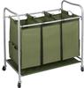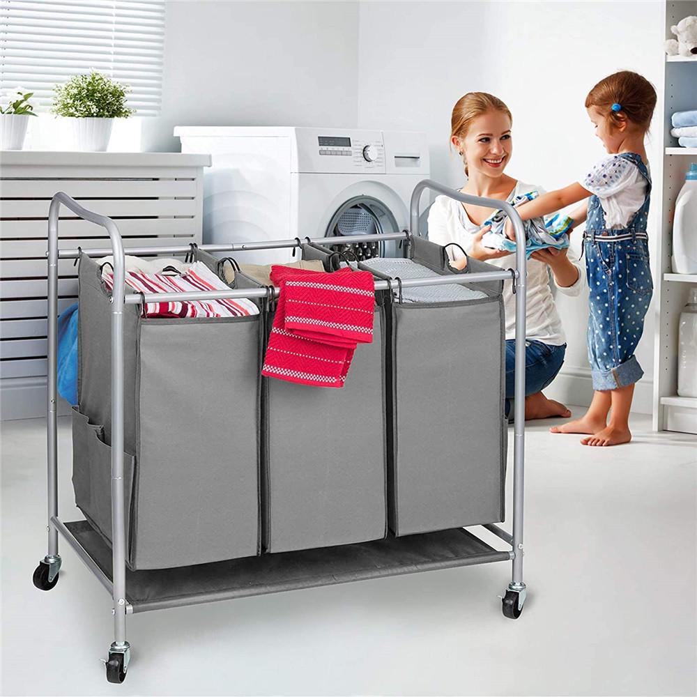 Large Oxford Cloth Laundry Basket with Three Compartments and Wheels for Easy Sorting and Mobility